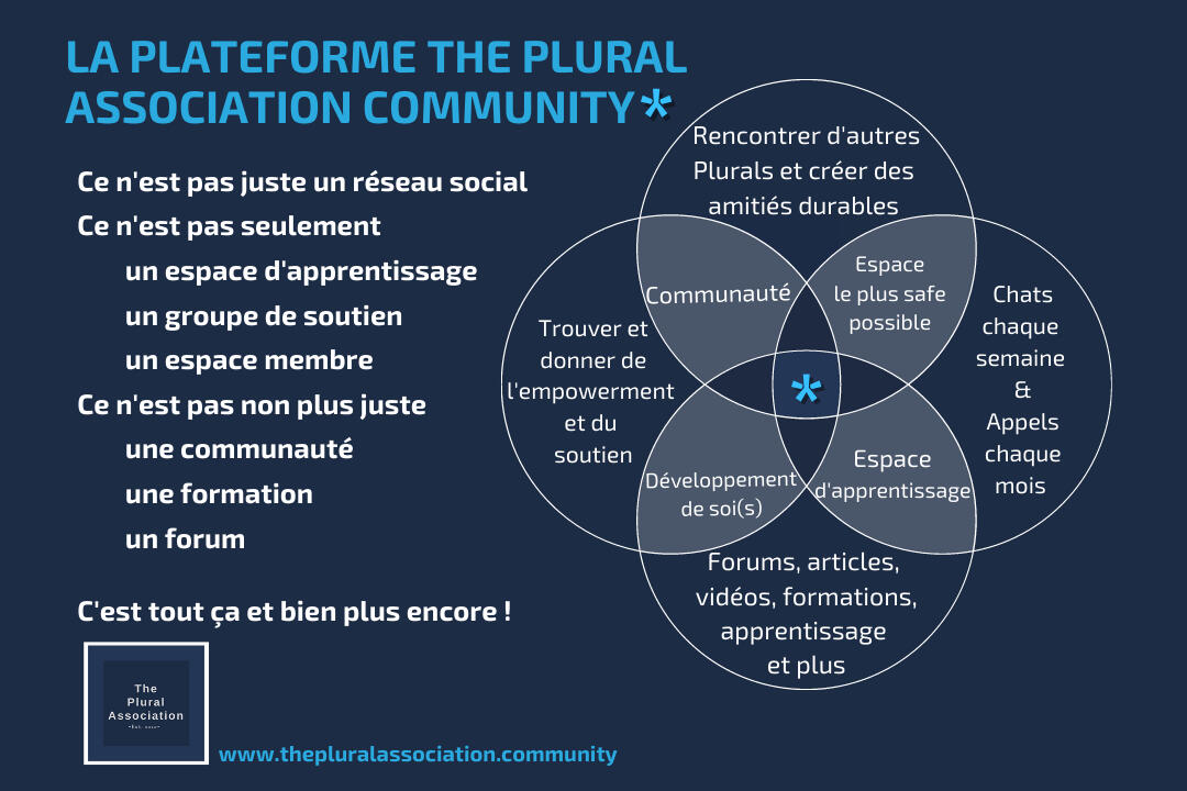 par des pair-es pour les pair-es, qui soutient et facilite la création d’une communauté pour les personnes qui vivent avec un trouble dissociatif de l’identité (TDI) ou un ATDS et toutes les autres formes de multiplicité sous le terme parapluie Plural.Fondée aux Pays-Bas, TPA est une association anglophone qui soutient